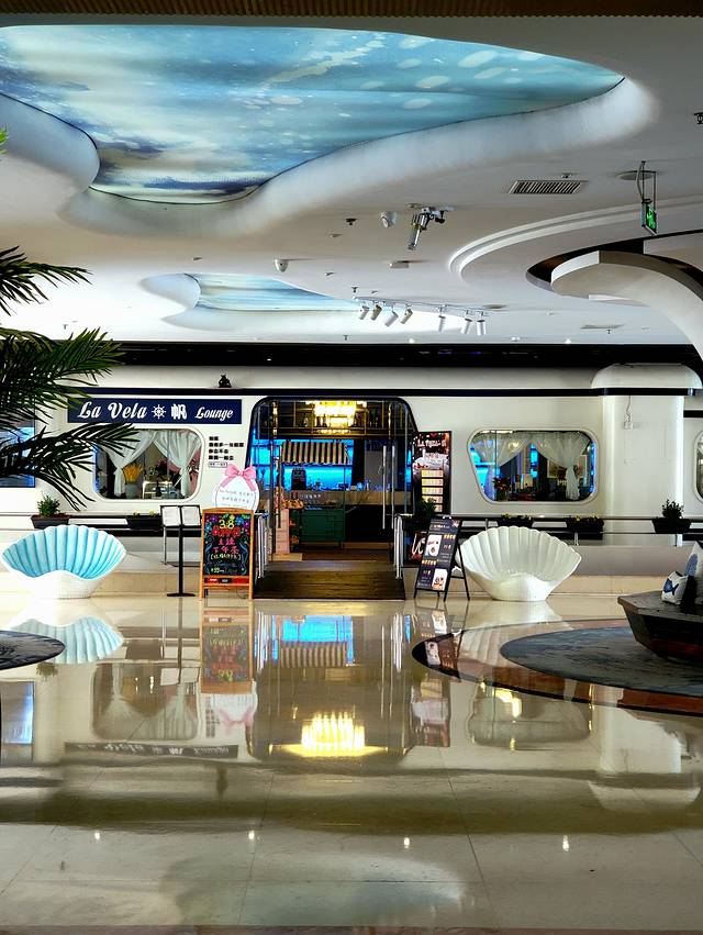 海军蓝的大厅宽敞整洁景色好,本土包厢“潭门”“铺前”等等即时就可游览琼崖所有特色市县。