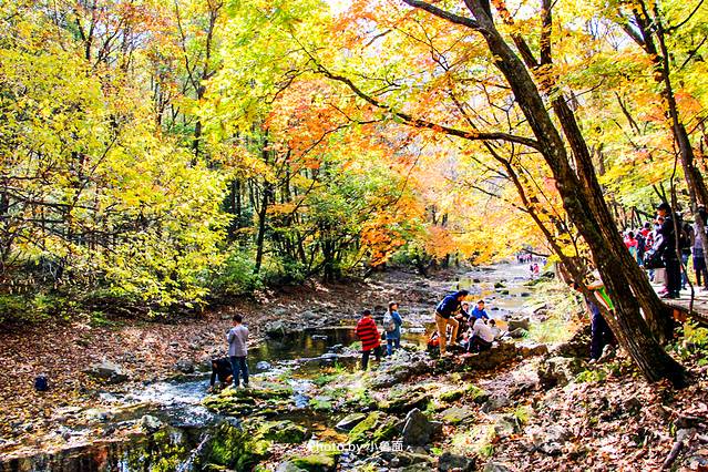 森林公园里有几个赏枫摄影点:小黄山景区的“枫之海”,这是小黄山顶部的一个景点,这里枫树面积大,每到秋季就像枫叶的海洋,在早上有雾时更是犹如仙境;夹砬子景区的“五彩湖”,每到秋季,黄的柞树、绿的青松、红的枫树,它们的倒影映衬在水里边,相当迷人。