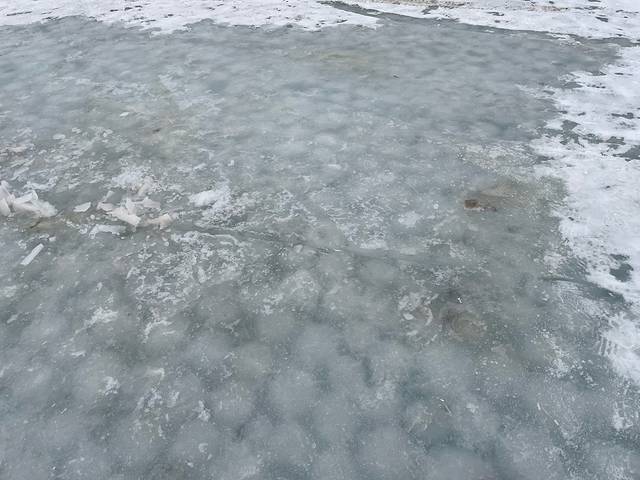 从洮南火车站出发,大约一小时到了四海湖,见到这千年奇观冰汤圆。