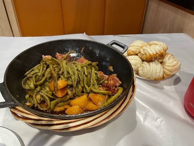 回到白城,吃一顿正宗东北菜,排骨炖豆角,好大的量,还配十个大花卷,太给力了,和新疆大盘鸡有得一拼。