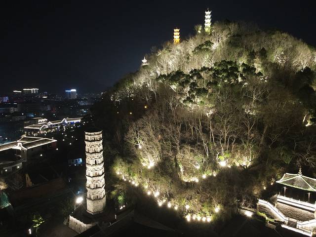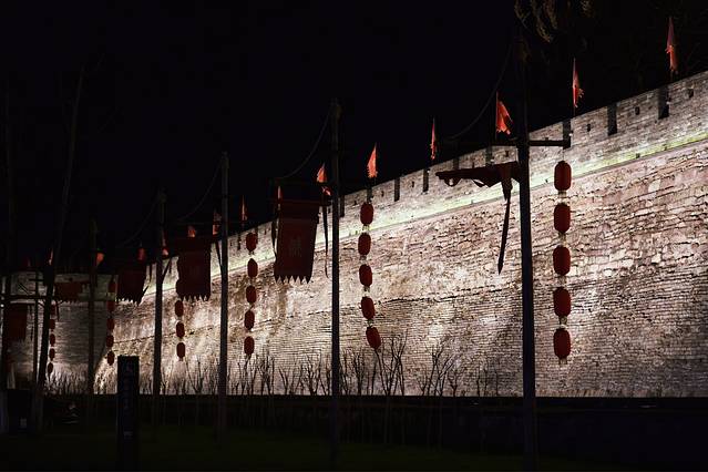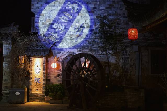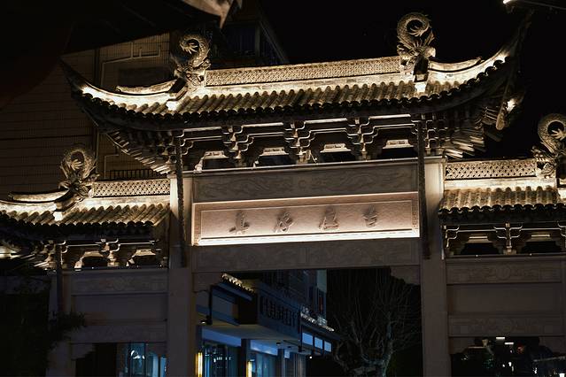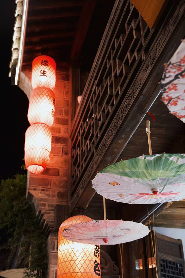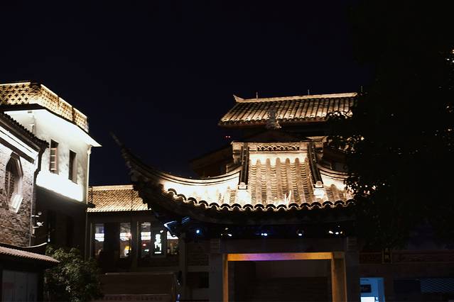 古城的夜景非常漂亮,很适合穿着汉服打卡。在安静浪漫的夜晚里散步于古城,还能听到美妙的歌声,是吉他小伙在唱歌。
