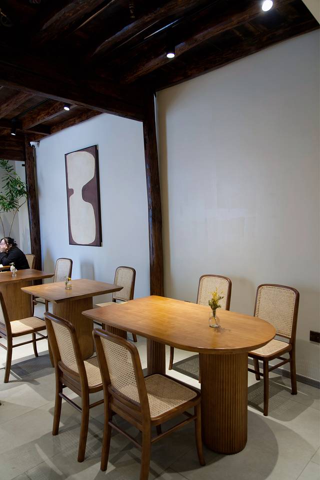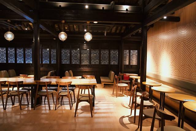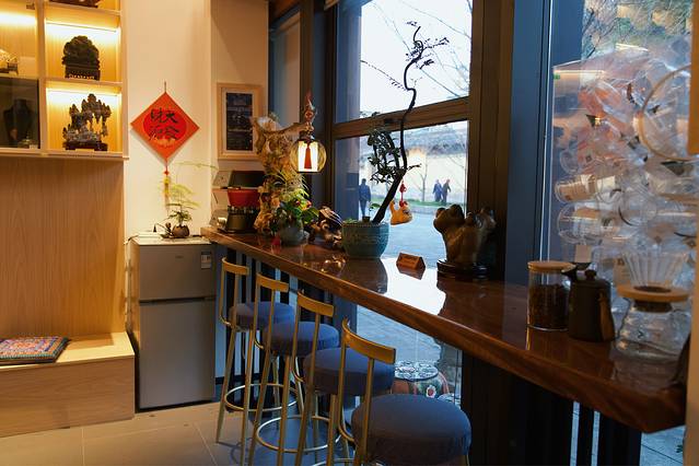 中式建筑古色古香的风格间流淌着 江南 的诗画韵味, 江南 赞亦然。不止门面古典,店内还特意保留了老建筑原有的房梁和柱子,牢牢把握住了古城古街的一个“古”字。