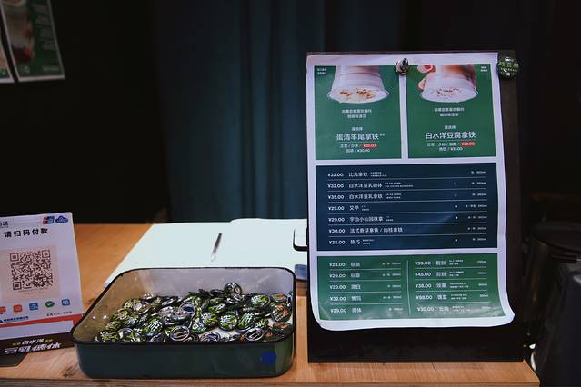 原创的蛋清和红豆沙加入拿铁咖啡里,非遗“ 白水 洋豆腐”结合咖啡,让人耳目一清,又记忆深刻。
