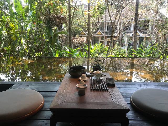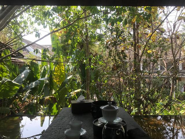 瞎溜达的时候突然看到一家店,二层的吊脚楼,透过围栏可以隐隐看到里面是非常有质感的装修风格,中午预定了去春武里吃饭,那边还有20多号要等,估计还得1个小时,先进来喝杯茶歇一歇,如果不是下午还有行程,在这里安安静静坐上一下午,喝茶,看书,发呆,也是很幸福的。