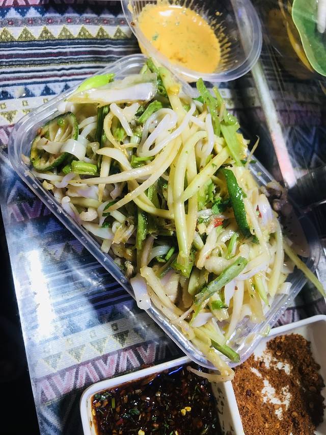 这个凉菜到处都能看到,就是各种海鲜、蔬菜什么的,放到一起捣一捣,说实话味道还是相当不错的,有柠檬的清香,和一点点的辣,我特别喜欢里面的木瓜丝,很爽口,小墨鱼仔和无骨鸡爪也特别好吃,就是感觉可能不太新鲜吧,我吃完就开始肚子疼,疼了一晚上。
