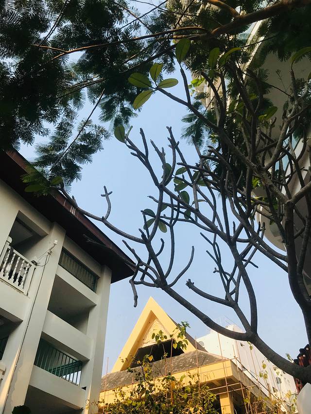 出门之后处处都是风景,随手一拍的是美的。酒店门口有一个小广场,架起自拍杆,自己在这嘚瑟了好一会,哈哈哈。