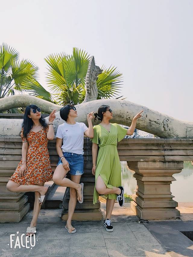 想要拍一个美美的视频,结果仨人简直毫无默契,在这得蹦跶了有二十多分钟吧,路过的老大爷都看不下去了,唯一一张,动作还算一致的照片,我花姐的脚丫子都在用力,看得出来是尽力了,哈哈。
