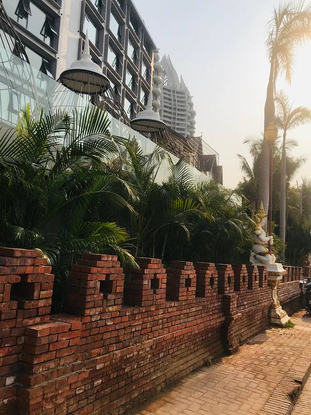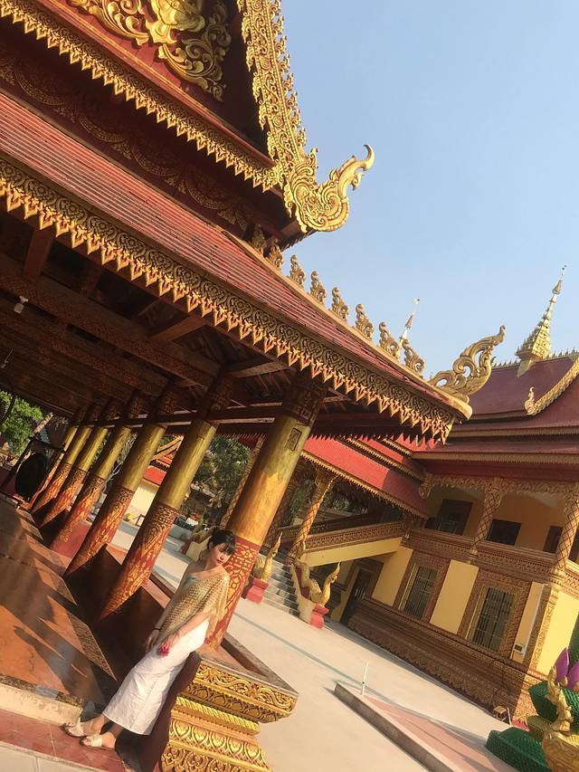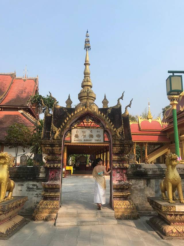 因为的租的车子,师傅直接把车开进来了,带着我们逛,比坐景区的车要方便的多,看到喜欢的地方随时可以停下来。曼乍佛寺,远远就看到这个建筑,超级的喜欢,赶紧让师傅停车进来逛一逛,主要还是为了拍照,哈哈。