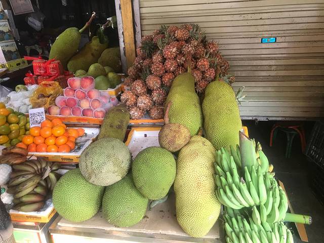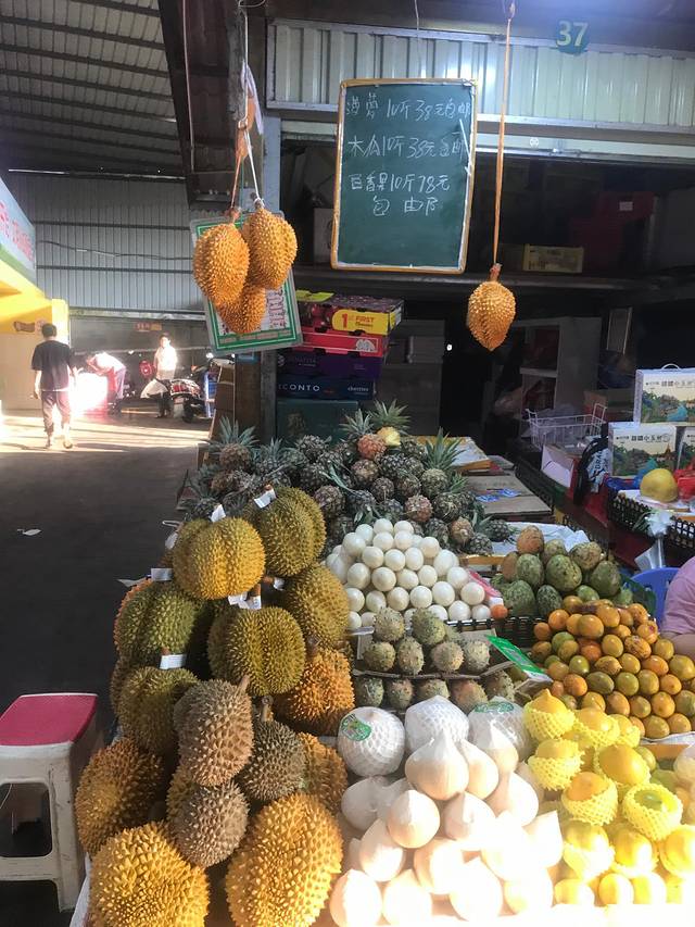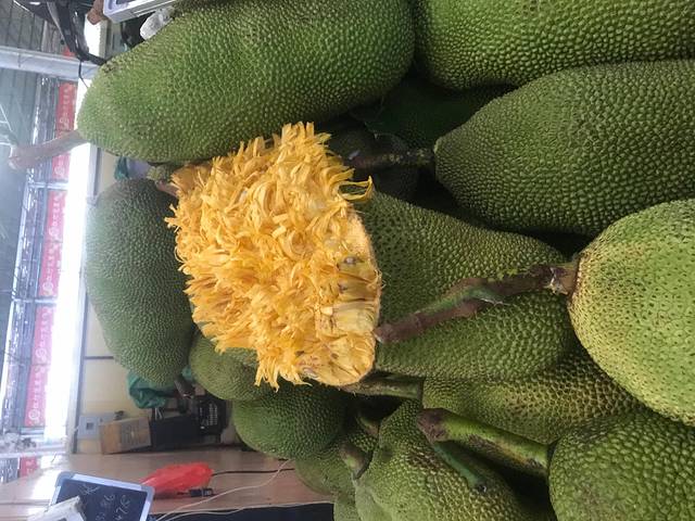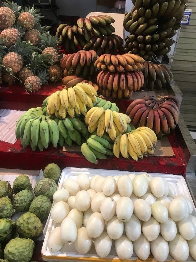 在这里,虽然感受不到慢节奏的烟火气,但是却能感受到热火朝天的批发场景,也是一种不同的体验。,这里好想没有想象的那么多,因为主要是批发到外地,所以大部分还是平常能够看到的,榴莲、鸡蛋果、菠萝蜜、香蕉、芒果等等。价格的话没有比较也不知道,总之是比在家买要便宜好多,哈哈,加了很多老板的微信,回来之后也能实现水果自由了。