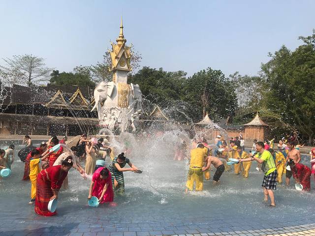 在这里除了感受泼水节的快乐之外,还有许多傣族的特色民居,可以在里面好好逛一逛,换上傣族的特色服装,也是非常出片的。
