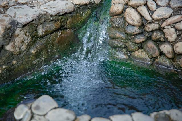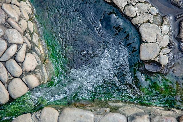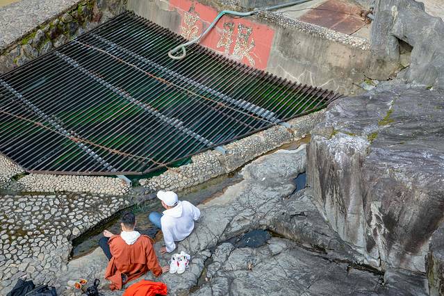 一路往下走大约只要十几分钟,泉眼二字清晰可见,这就是温泉酒店中泉水的来源地,这口泉眼就在大峡谷的溪流旁边,这是一口非常罕见的高热含氡温泉,水温可达到70度,泉眼处有几处流出来的泉水,在泉眼边泡泡脚真的是太舒服了。