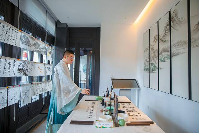 在这里你可以换上一套汉服,打卡每一个场景,穿上汉服后走在江南水乡的庭院中真的是太有意境了,像是穿越到了古代一样,也可以和你的小伙伴来上一场大型实景剧本杀《大唐丹青》