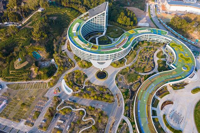 从空中俯瞰酒店,就能感受到这座酒店绝妙的设计感,这条蜿蜒的巨龙集合了酒店客房、会议中心、种子星球等等,超多有意思又实用的功能,这无论是奢享度假还是周末带着家人孩子来玩亦或者是商务出行,都是很好的选择。