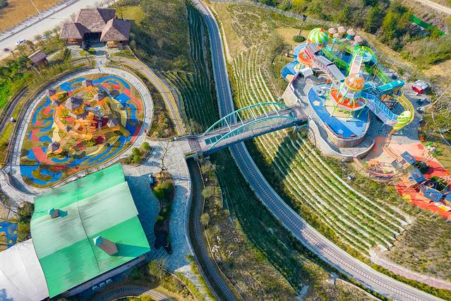 这里的核心特点就是网红小火车了,坐上探险号小火车环绕在山间,全方位沉浸式的欣赏乐园中的风景,身临其境环绕山丘将美景尽收眼底,思绪好像被拉回了童年的时光,只可惜像我们这代人小时候,根本就没有享受过如此的亲子乐园,现在长大了,也一定要来体验一下回到童年的感觉。