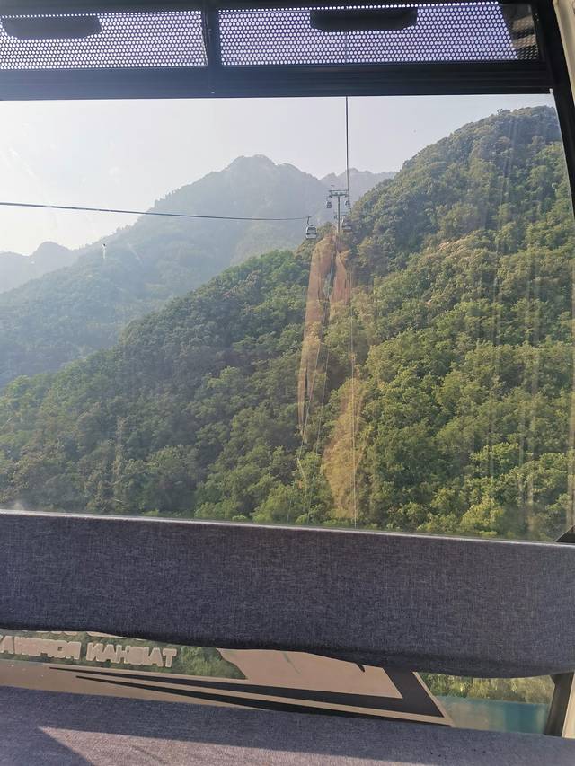 索道为封闭式的,时间不长,能够清楚看到十八盘和玉皇顶。