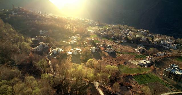 落日余晖洒向山谷,这里,又将是另一番世外桃源之景