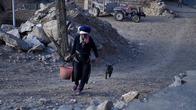 嘉绒藏族妇女身穿传统服饰,忙碌于田野、公路之间