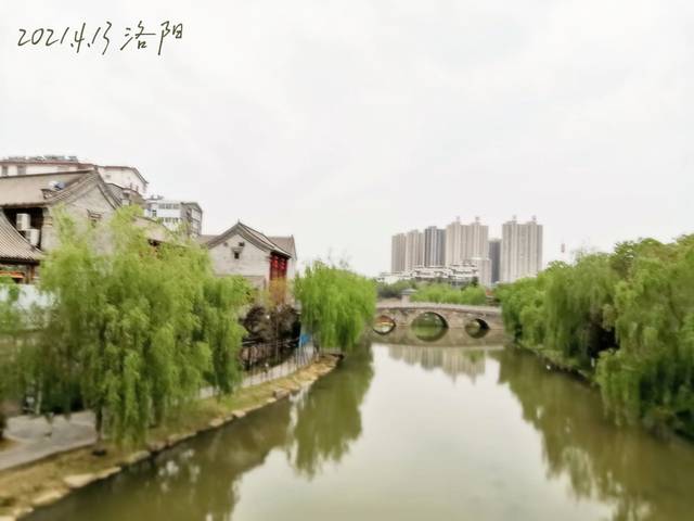 洛浦公园,上面架着牡丹桥,下面邻着洛河。