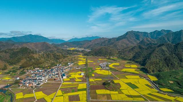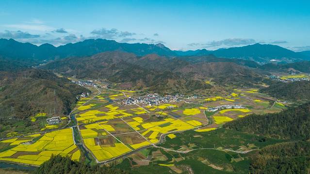 蕉川村位于 浙江 丽水 遂昌 县的新路湾镇,春天可以看到不输 婺源 的油菜花海。现在,这里的3000多亩油菜花正同时怒放。盛开的油菜花与青山绿水相映成趣,将大地妆点成美丽的金色海洋。