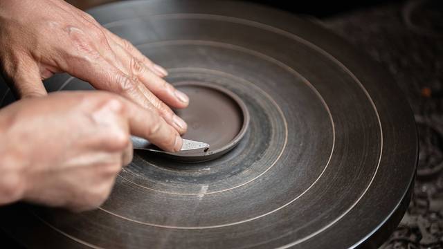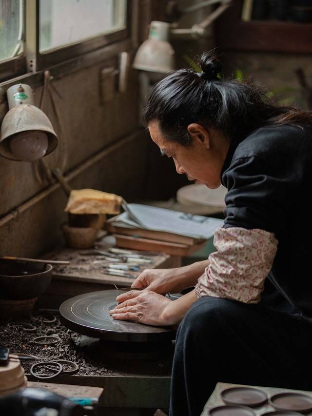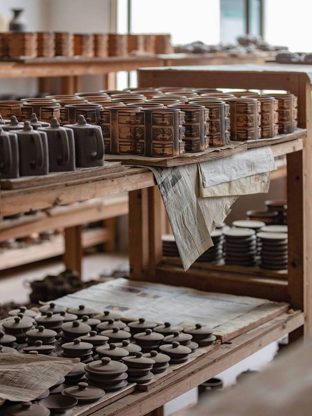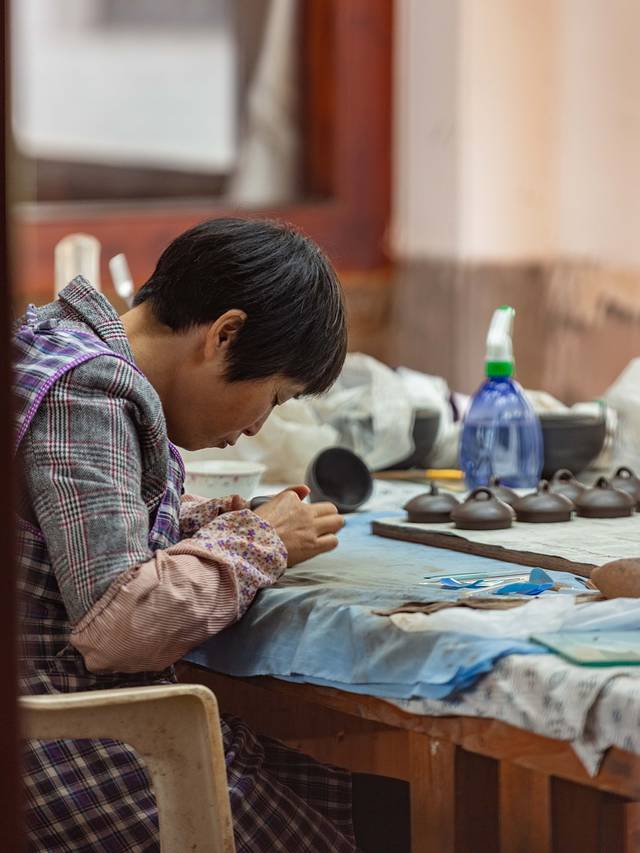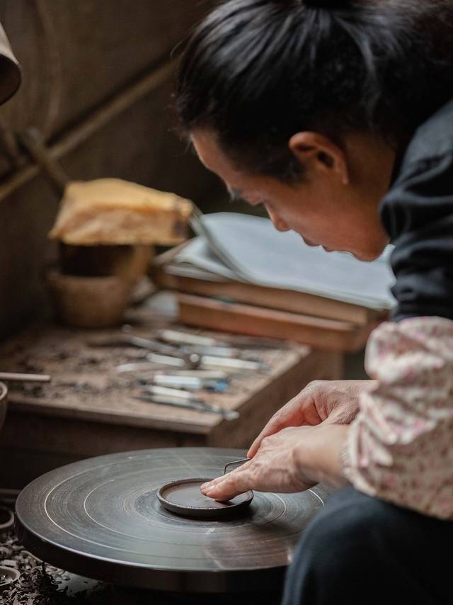 一楼的作坊里,工匠们正在潜心制作陶器。汤老师带我到了另一间制陶的屋子,他在制作陶器的时候,相当专注,心无旁骛才能静下来心创作。