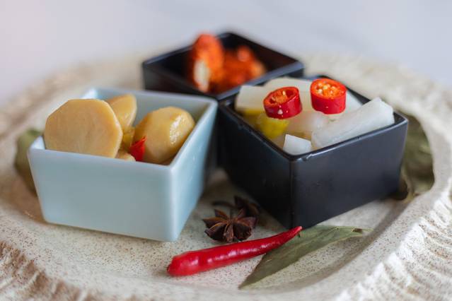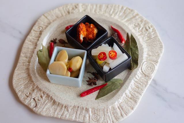 先上的是凉菜,也是农家开胃菜。有豆腐乳,萝卜条等,老板说当地的口味是比较重的,但我们觉得还不错,能接受。