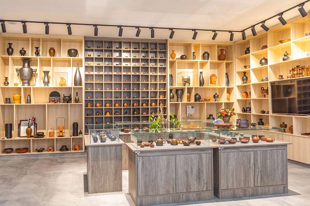 陈列厅里摆满了他的作品,款式、大小、颜色不一,相当丰富。夏老师不甘于墨守成规,在二十多年制陶的丰富经验上寻求突破,独创了自己别具一格的“夏陶”。
