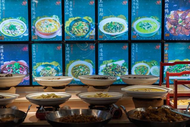 餐馆很好找,走进去就是点菜大厅,有食材和样品,可以自己按喜好点,也可以找老板推荐。酸菜鱼,红烧肉等都是他家的特色菜。