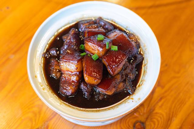 朋友一上来就把这盘特色卤鸭吃了一半,边吃边赞,搞得我也很好奇,尝了一下,果然还不错,略甜的口感,入味的很。