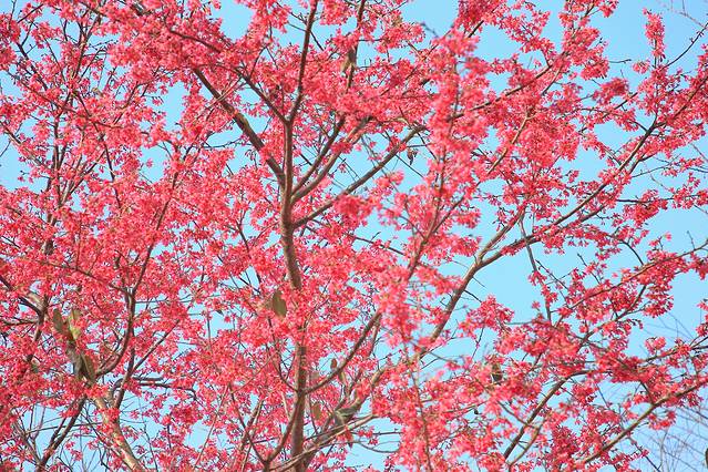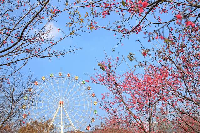 这里是 佛冈 赏樱地的天花板,每年的2-3月中旬,一千亩团团簇拥的红色樱花雨阳光交汇绽放的枝头,给你带来至属于你的 春日 限定。