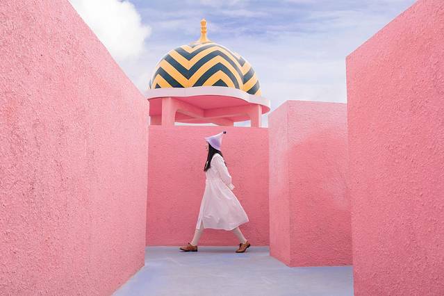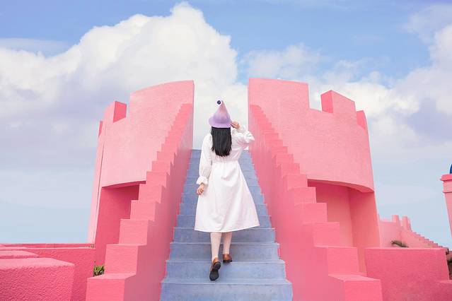 曾厝安里的很多民宿、客栈被刷上魔幻的色彩,装修成城堡的风格,赤橙黄绿青蓝紫粉,只有你想不到,没有你见不到。这么鬼才的设计理念高迪看了都会点赞。然而在各路社交媒体上,这种风格的民宿吸引了无数学生和小女生的关注。
