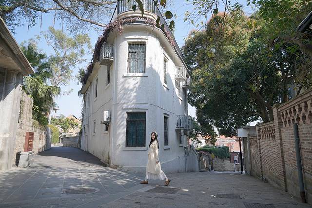 春草堂虽然阳台上晒着被罩,但还是掩盖不了它的精美。春草堂是建筑师许春草的故居,他喜欢在闲暇之余自己动手,将花岗岩一块一块砌上去。