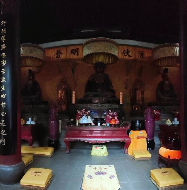 白马寺本院内位于由南到北的中轴线上的佛殿,从前到后依次分布着山门、天王殿、大佛殿、大雄殿、接引殿、清凉台和毗卢阁等主要建筑。