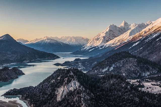 然乌湖的色彩非常丰富,会随着不同的天气呈现不同的色彩,然乌湖最漂亮的时候是三月底至四月中旬,也就是我们这次来的时间啦~