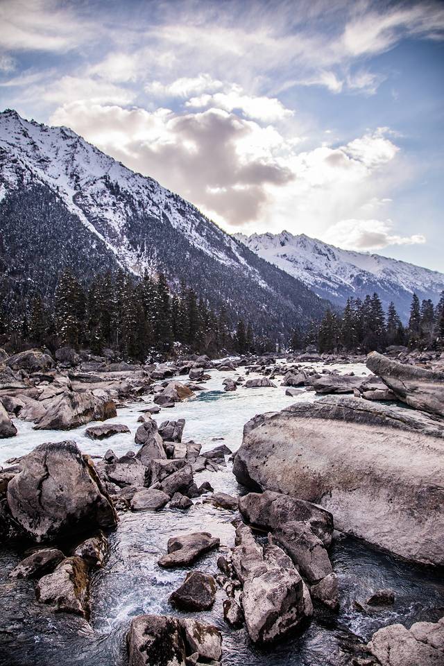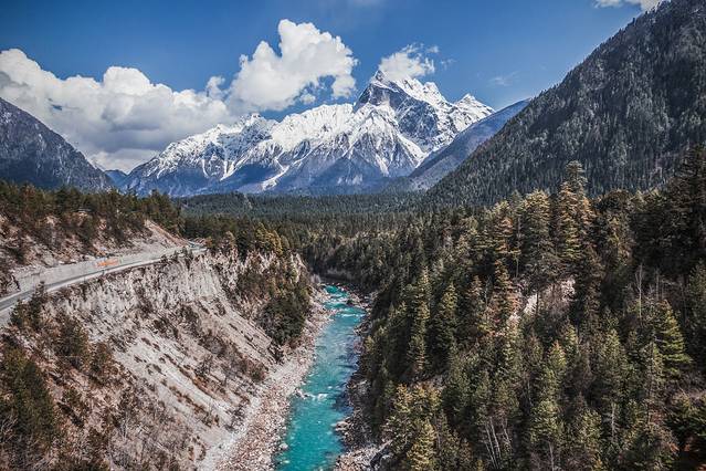 在波密,壮丽的雪山总是不期而遇,仿佛走进了魔幻电影中
