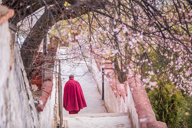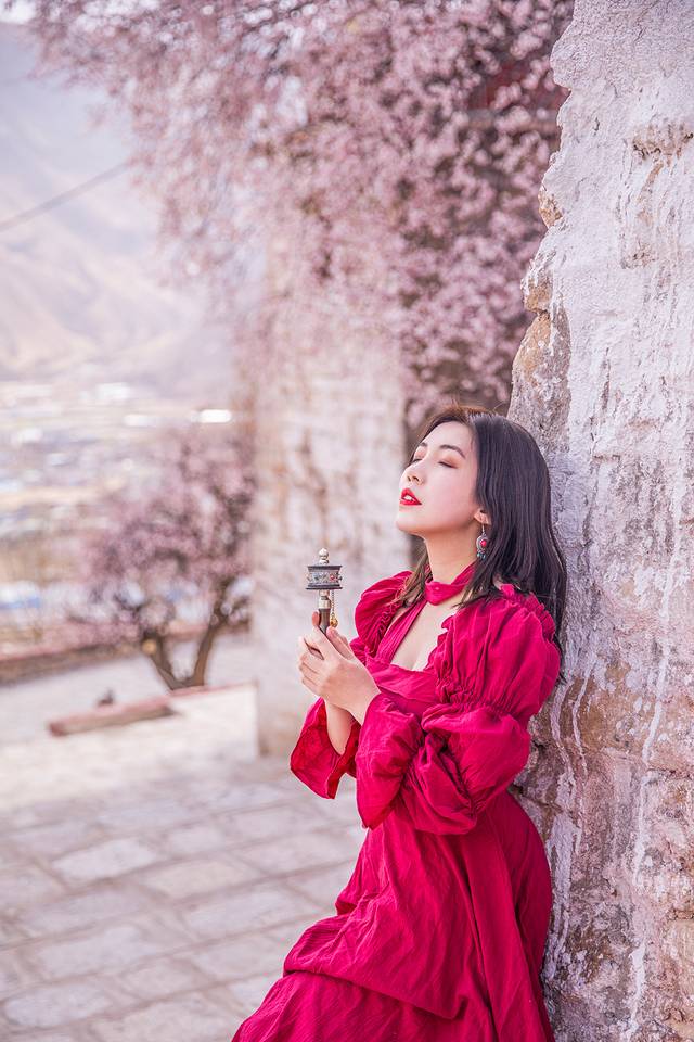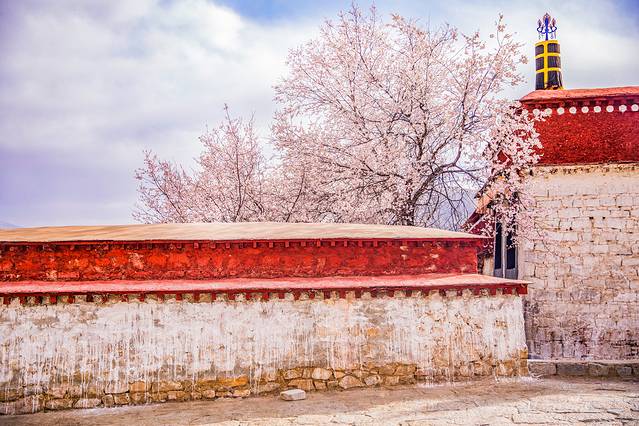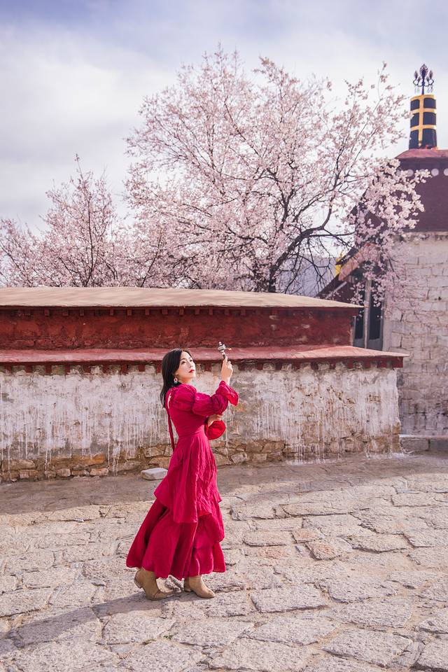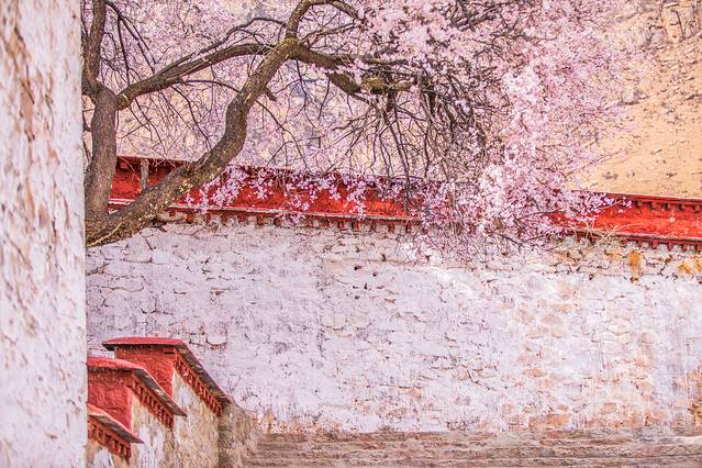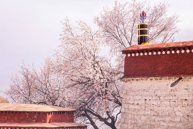 下午到来,静静地看着桃花摇曳,僧人和猫咪在眼前掠过,远眺布达拉宫,可谓“人间四月芳菲尽,山寺桃花始盛开”