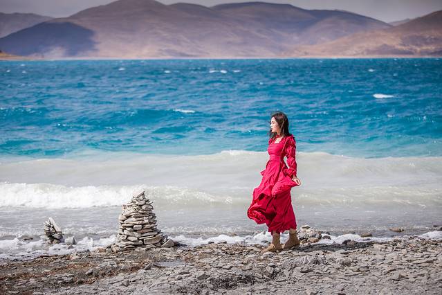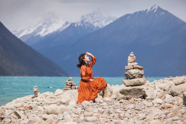 四月份的西藏白天已经比较温暖了,晚上温差较大,我一般是白天穿正常的裙子+打底裤,外面是薄外套,车里放着厚外套,如果阴天/下雪/晚上就加上厚外套。