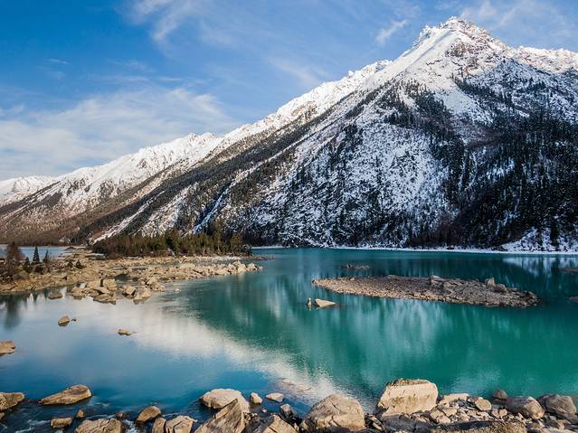 等到五六月冰川融化后,然乌湖就会变得浑浊,不是这番唯美的模样。