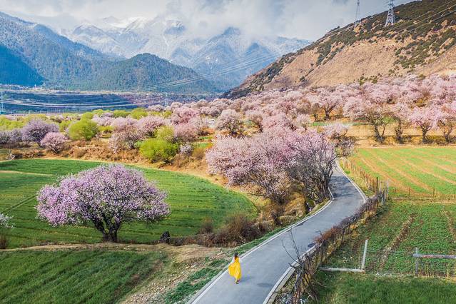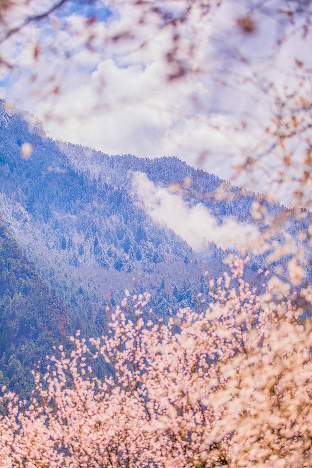 我们立马驱车前往离林芝25公里的朵当村,目前还算小众,这里人少景美,雪山下的桃花开得正好!