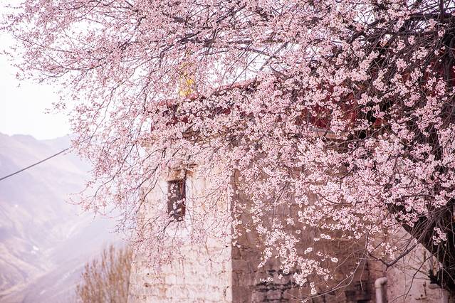 这就是位于拉萨北郊的帕邦喀,每年四月,院子里的百年桃花静静开放,不用门票,游客稀少,还能俯瞰拉萨全景,帕邦喀的桃花伴着这座寺庙的砖瓦石墙,人少景美绝对要来打卡 。