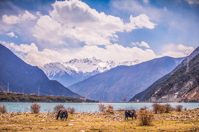 这一条路的沿路风景非常美,巨大的雪山连绵不绝,两边时常有桃花闪现,雅鲁藏布宽广而雄伟,倒影着高山与流云。