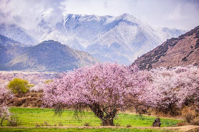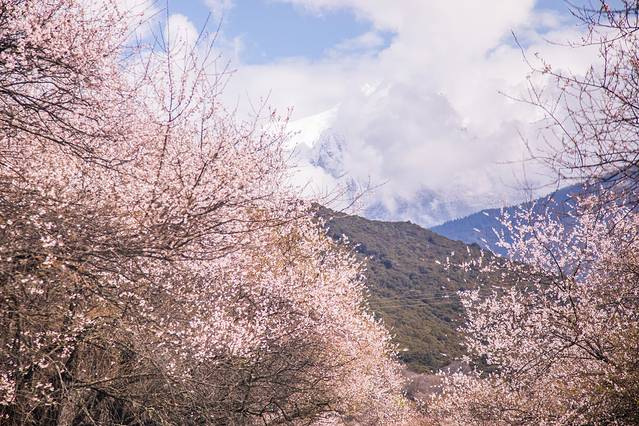 一般称的“桃花沟”则是指的如纳村到波密二监狱这一带,沿着一条公里形成美丽夹道花树林,桃花树龄都在百年以上,肆意地绽放在林间地头,柏油公路就从这些桃树林里穿过,你绝不曾见过这样美的行道树。