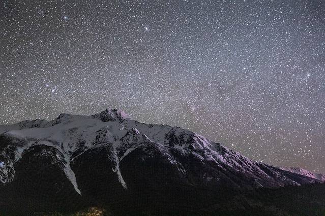 在上然乌转了好几个弯,终于找到一个地方让山把城镇的光污染挡住,才能拍出相对来说干净一些的画面。