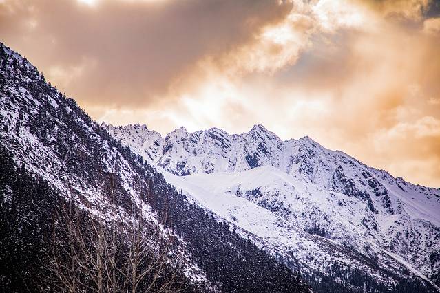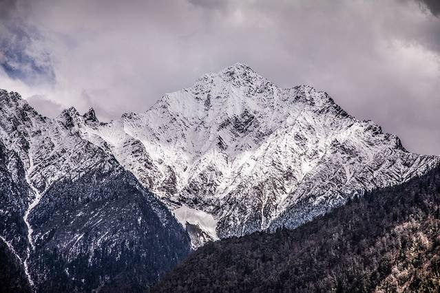 又因降雨量充沛,山顶终年积雪,经常有云雾,南迦巴瓦也被人称为“羞女峰”,山尖不会轻易示人,十人九不遇。