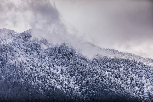 阳光刺破清晨,昨夜的大雪渐渐消融,变成缭绕山间的裙摆。