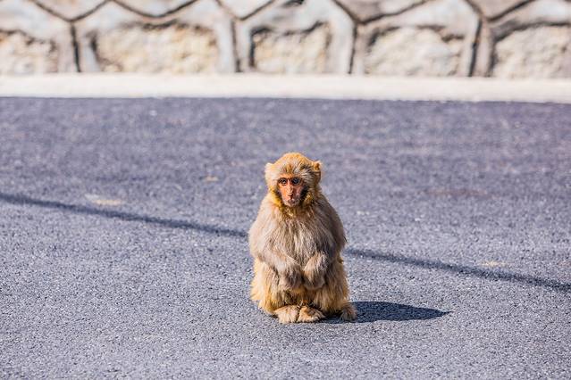 路上遇到了小猴子一家在晒太阳,扔了两个火腿肠就开心地手舞足蹈了,太可爱啦~