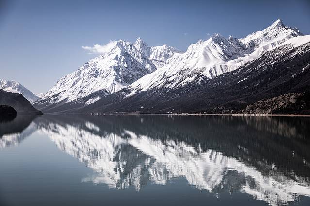 离开拉萨,一路往林芝方向,这是拉萨境内难得的高速公路路段,靠近林芝的第一个景点是巴松措,有不输新西兰的美丽雪山湖泊风景。