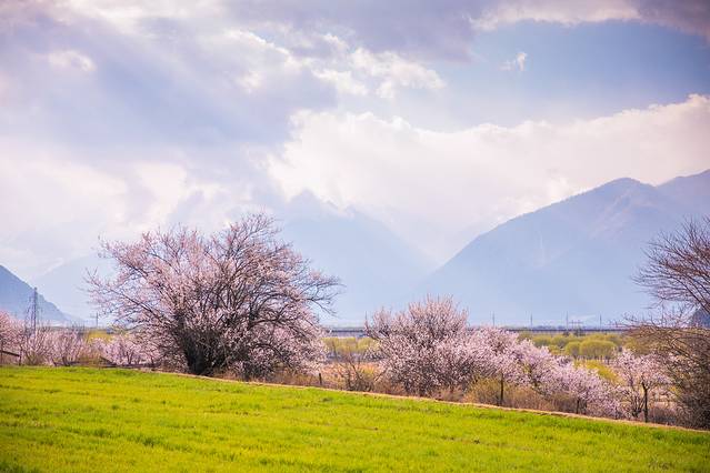 青稞地绿油油,真的是梦中的林芝桃花场景。