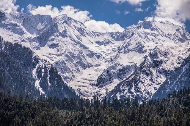 南迦巴瓦位于林芝和墨脱交界地带,地处喜马拉雅山脉、念青唐古拉山脉和横断山脉的交会处,南迦巴瓦峰山脚下是世界上最深长的峡谷——雅鲁藏布江大峡谷 。