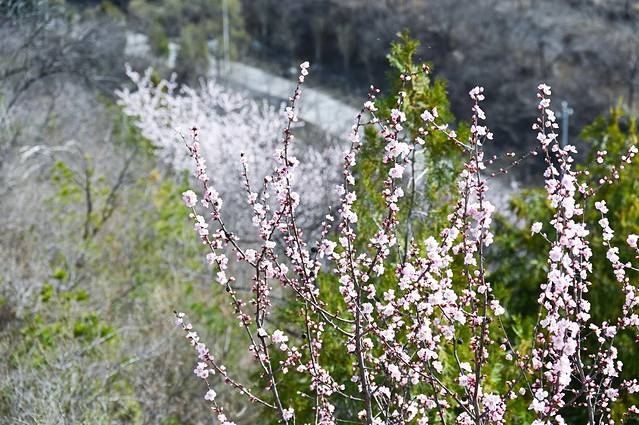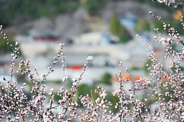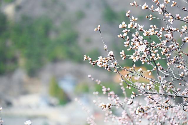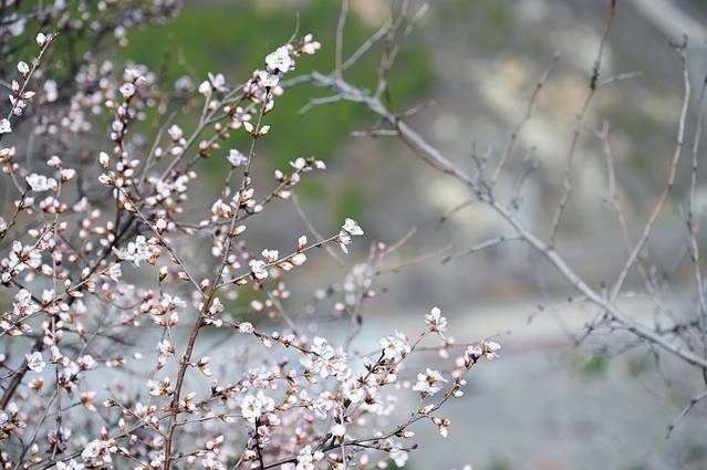 上周刚刚下了一场大雪,温度有点低了,这周的山杏与山桃花都没能如约盛开。需要再等一周,下周就都开开了,现在的山上只是星星点点开了一些山杏花,由于杏花是白色的,看上去不是很明显。
