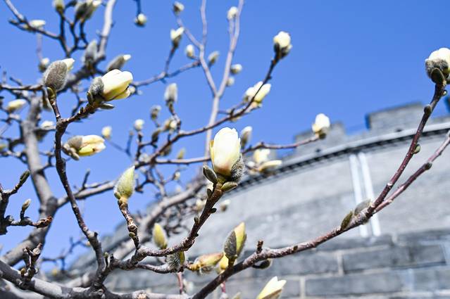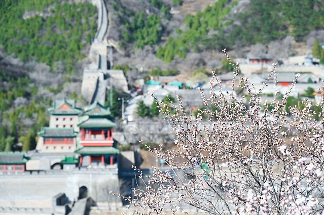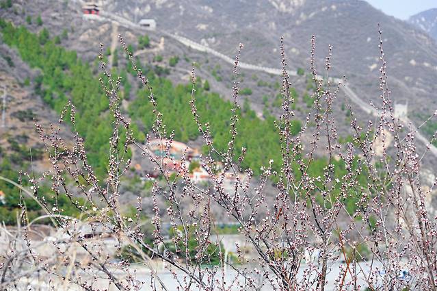 靠近长城的几株山杏花已经开了,但还不算盛开